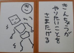 皆様もぜひこの絵のようにかくかくしていただいて、緊張がいかに自分の邪魔をしているか体感してみてくださいませ。そしてついでに、キネステティク・クラシック ネオを体験してみてください。